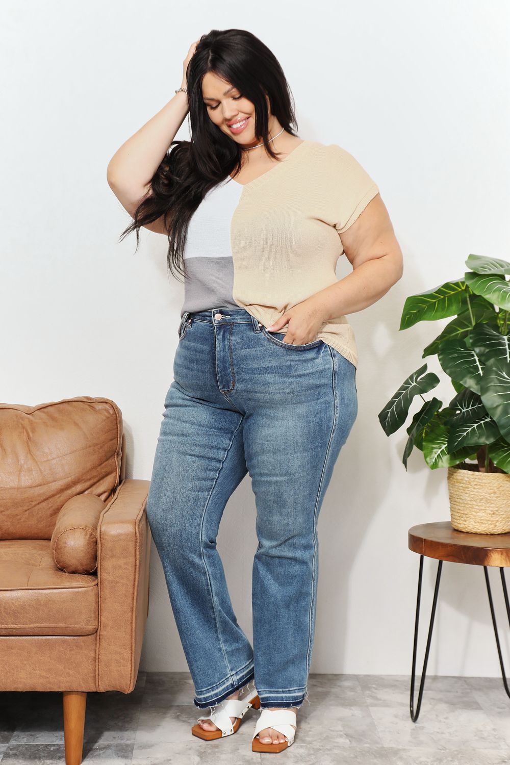 Curve model-height 5'9", bust 48", waist 38", hip 48", size 1X, jeans size 16W