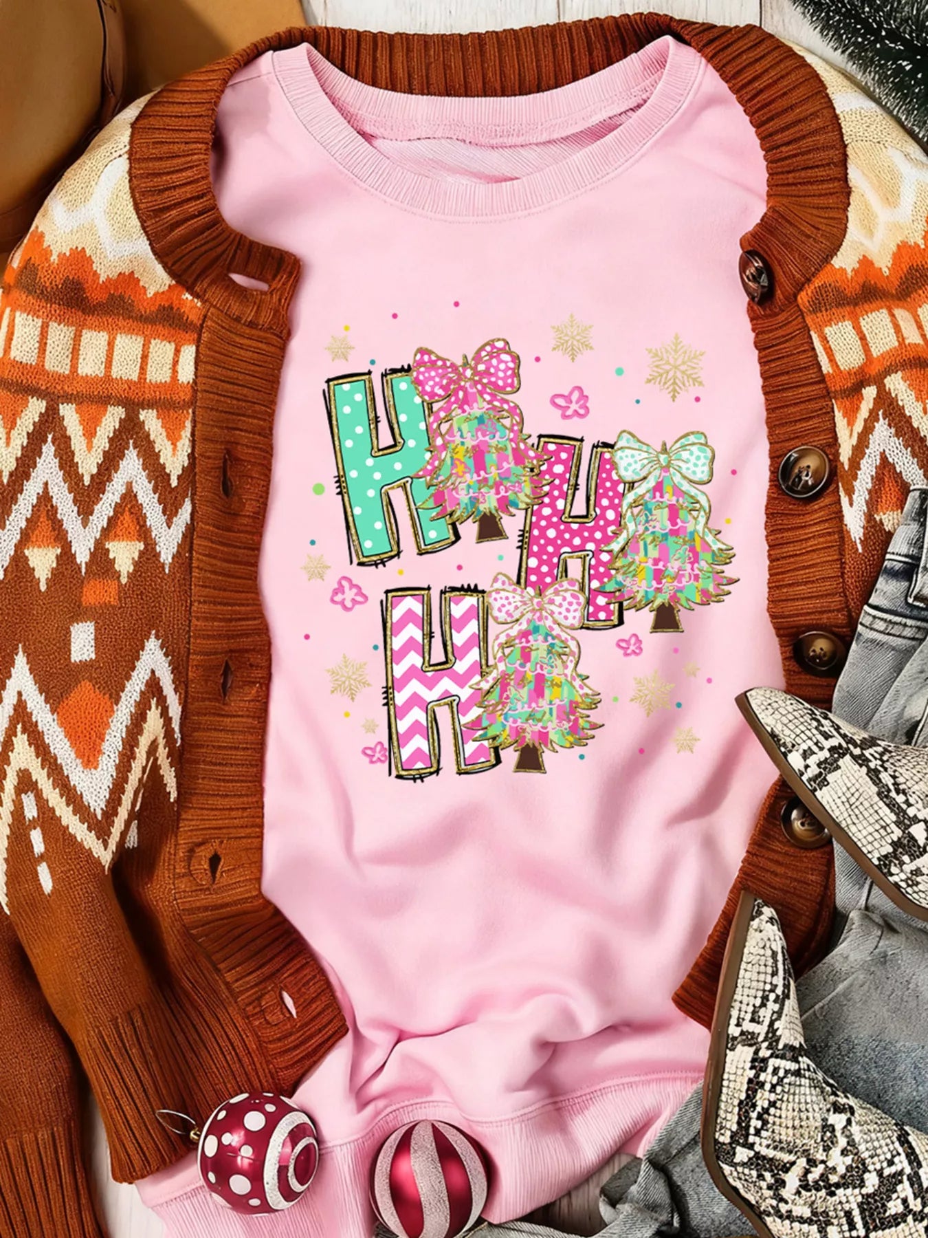 HO HO HO Christmas Tree Graphic Pullover Sweatshirt
