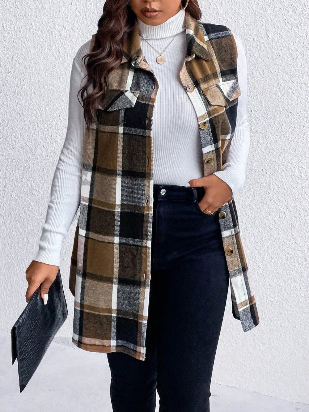 Honey Plus Size Pocketed Plaid Button Up Vest Coat