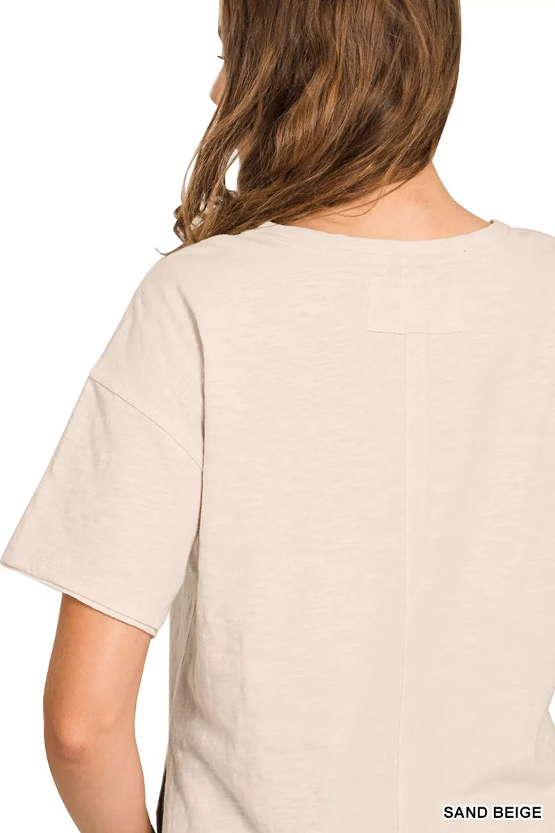 The Cotton Slub Short Sleeve Tee is a versatile and comfortable wardrobe essential. Made from soft cotton slub fabric, this tee offers a relaxed fit for everyday wear. The short sleeves provide a casual look that can be easily paired with jeans, shorts, or skirts. With its classic design and quality construction, this tee is perfect for both lounging at home and running errands. Add this stylish piece to your collection for effortless style and comfort.