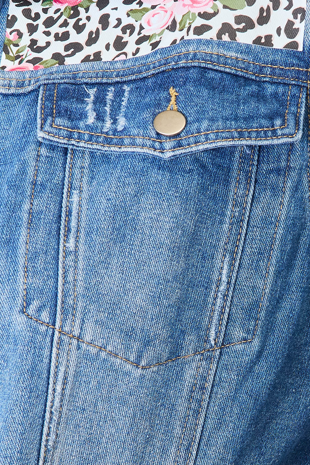 Baeful Leopard Floral Distressed Raw Hem Denim Jacket