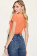Regular size model-height 5'8", bust 34", waist 24", hip 35", size S, jeans size 1