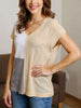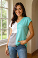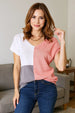 This color block knit top features a V-neckline, adding a touch of sophistication. The short sleeves offer a comfortable and casual look. The color block design adds a modern and stylish element to the top, making it a versatile and fashionable choice for any occasion.