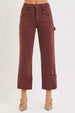 These premium high-waisted carpenter jeans feature a striking burgundy wine color that sets them apart from traditional denim. Crafted from durable cotton denim with excellent shape retention, they offer a relaxed wide-leg silhouette that's both comfortable and on-trend. The high-waisted design creates a flattering fit while the cuffed hem adds contemporary styling. Functional carpenter details include utility pockets and classic five-pocket construction. The rich burgundy hue makes these jeans perfect for creating standout casual looks while maintaining the versatility to dress up or down. Quality construction ensures long-lasting wear and the cropped length pairs perfectly with various footwear options.